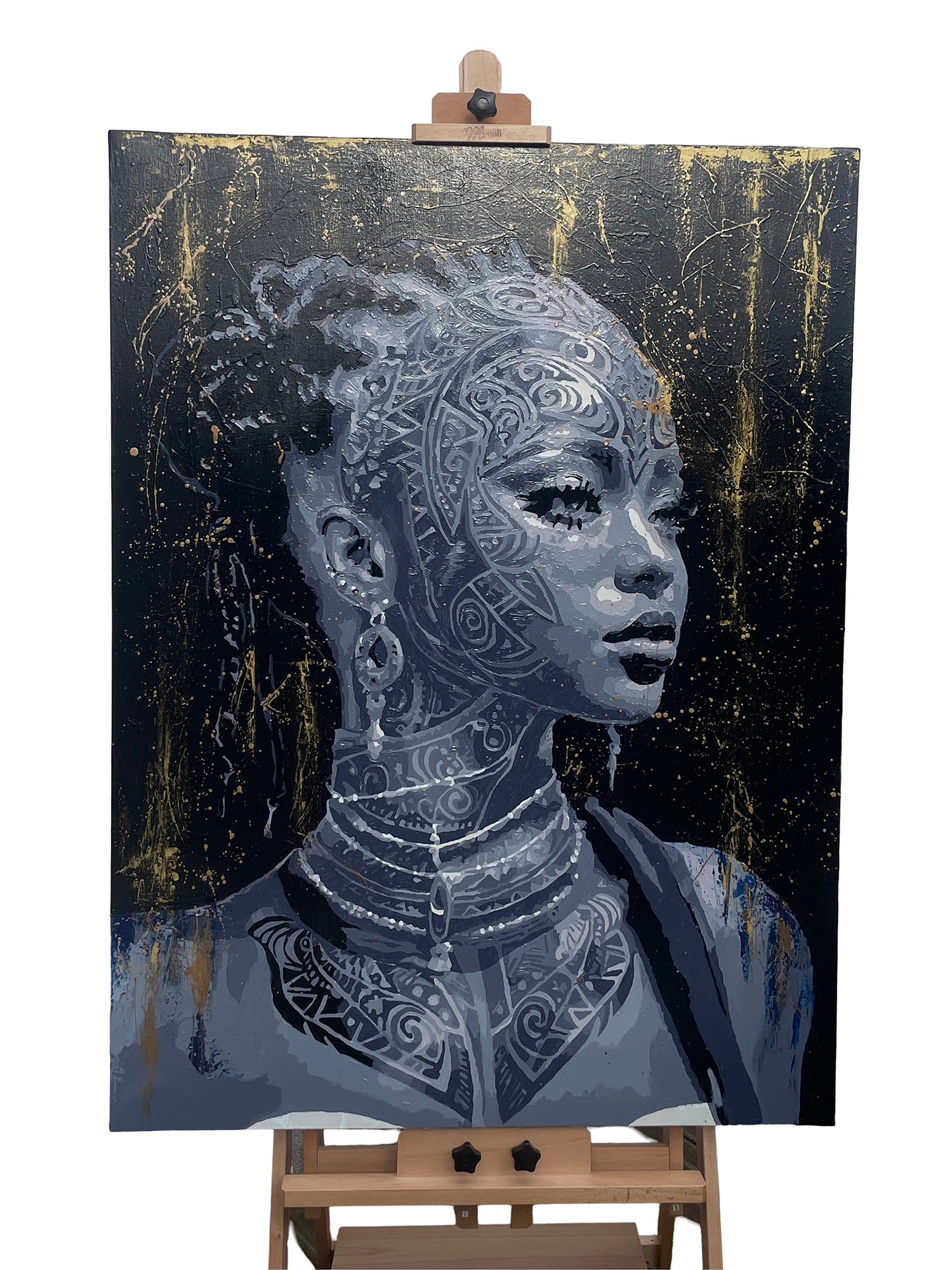 Techniques utilisées : techniques mixtes, acrylique, projections de peinture, pinceaux, brosses, couteaux