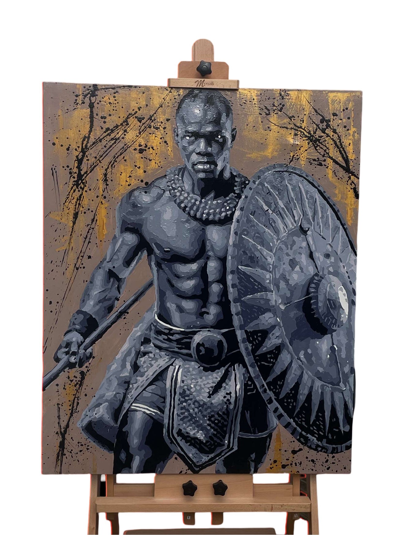 Ce tableau illustre la puissance intérieure, rendant hommage à la fois à l'esthétique corporelle et à la culture qu'il représente. Il invite à réfléchir sur le rôle du guerrier non seulement comme protecteur, mais aussi comme gardien d'une histoire et d'une mémoire collective.